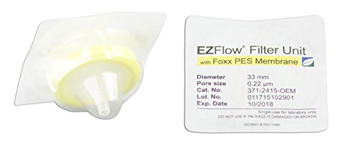 EZFlow Sterile Polyethersulfone (PES) Syringe Filters, 0.22um Sterilizing Membrane, 33mm, 100/PK