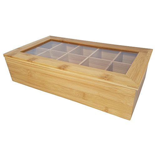 (Royal Brands)/Kitchen Dining/Coffee, Tea Espresso/DIRECT FROM USA/Bamboo Tea Box ? wood ? 10 equal sections ? Transparent Top ? Equally divided compartments ? Ba...