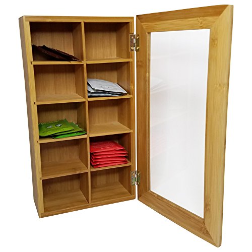 Product DescriptionBamboo Tea Box - High-Quality wood - 10 equal sections - Transparent Top - Equally divided compartments - Bamboo Framed Lid - strong and durable - Acrylic Glass Top0