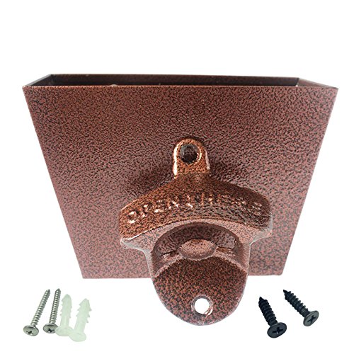 Product Description There's nothing more refreshing than drinking a fizzy soda pop or crisp beer out of a bottle but there's also nothing more frustrating than trying to pop the tops off. This is why every household should have this set of our wall mounted bottle opener and catcher in or around the kitchen, the den, the game room or the man cave. It is incredibly easy to install and comes with free mounting screws. 0