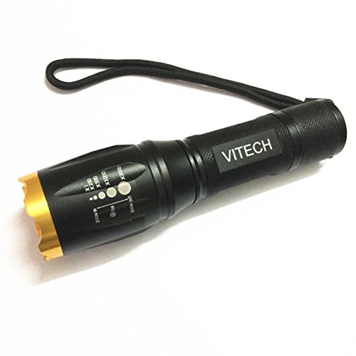 VITECH High Powered Tactical Flashlight - Ultra Bright LED Handheld Flashlight - Portable Outdoor Water Resistant Torch with Adjustable Focus and 5 Light Modes for Camping Hiking etc