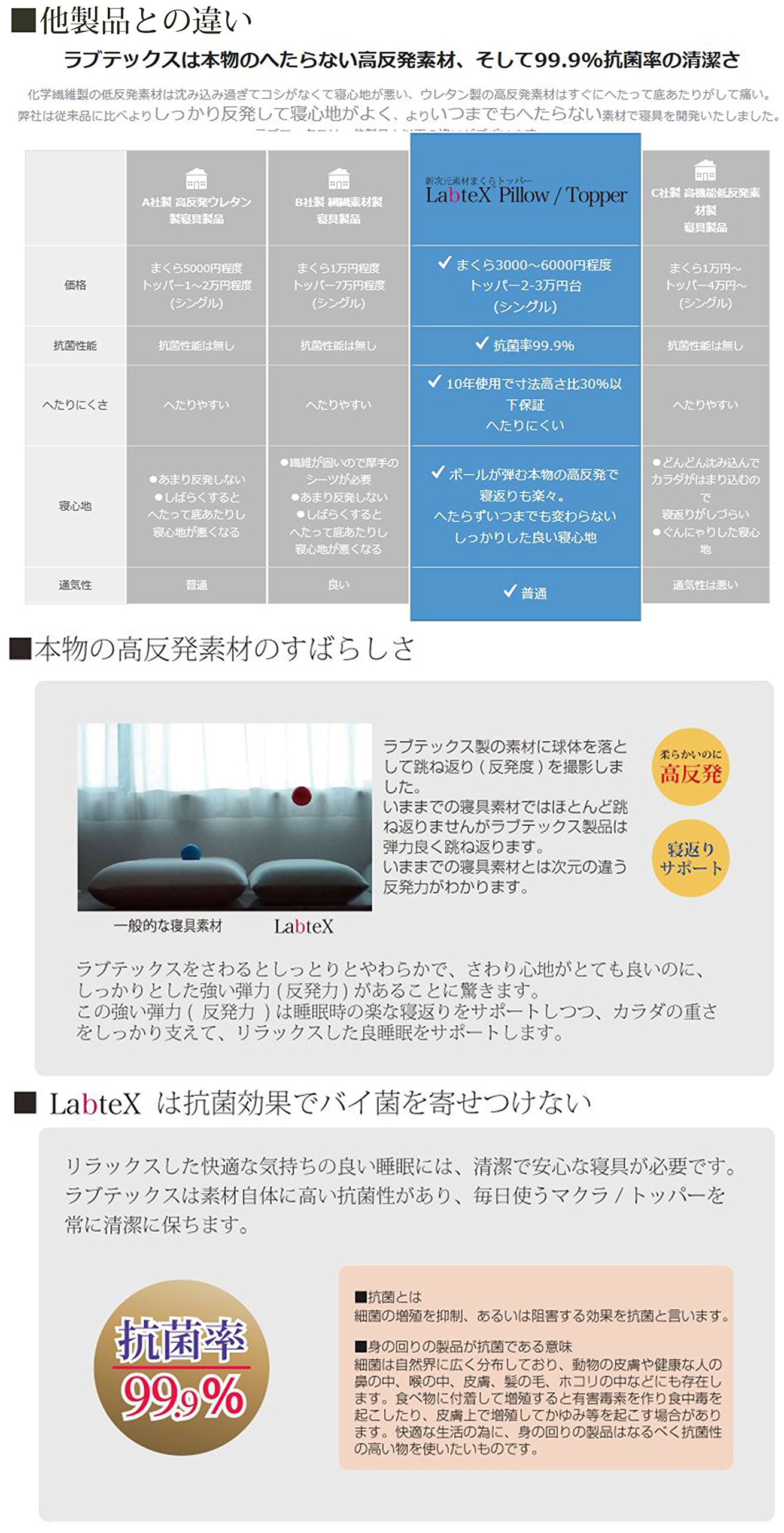 ● Lovetex made by Protech Inc. has a high resilience of the material itself plus a lot of bubbles inside the manufacturing process so that it is highly repulsive but soft and highly breathable