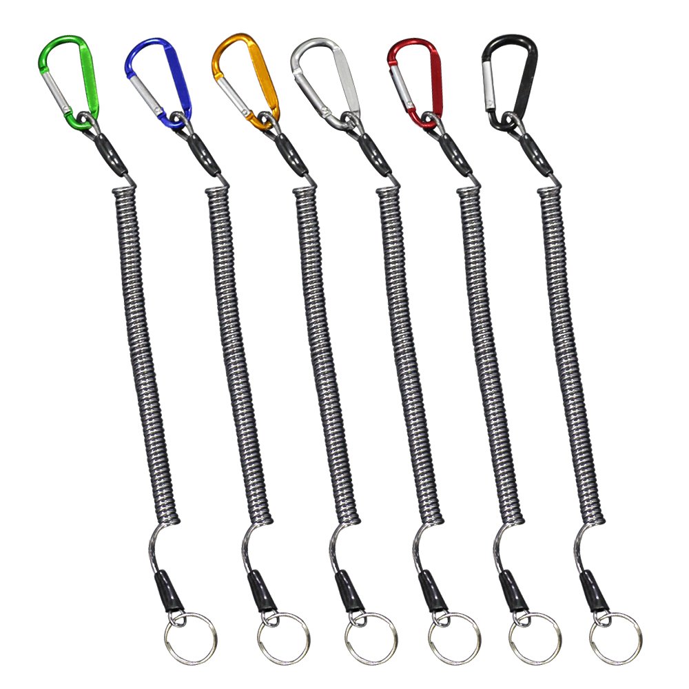 Fishing Safety Rope (6), Multicolor Expansion Ring Key Holder Strap Securing Pliers for Wire Steel, Lip Grip, Fish Tackle Tool Boat, Fishing, Kayaking, Wading, Camping and Hunting