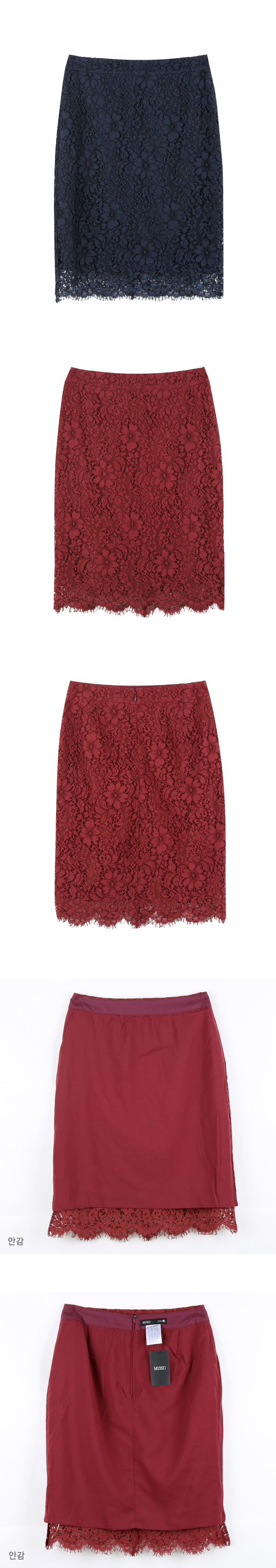 - 레이스원단으로 둘러진 여성스러운 미디스커트입니다.