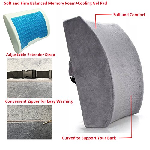 Studio : Relancer Publisher : Relancer Product Description Features of Memory Foam Lumbar Support Cushion: 1.Soft and Firm Balanced Memory Foam,you can sit, and sit, and sit and it will never go flat! 2.Revolutionary New Feature-Cooling gel pad 3.Curved to support your back 4.Straightens and corrects your posture, with utmost support along your lower back's natural arcs. Protects you from sitting wrong in harmful positions. 5.Plush gray\blue\rose red\black removable velvet cover,zippered and washable 6.Adjustable straps length to perfectly fit your chair 7.13.8inch(L)x12.2inch(H)4.73inch(W),large enough but light weight