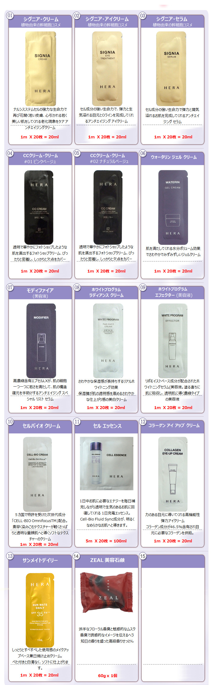 | ★送料無料★国内発送★ HERA(ヘラ) 選び放題/20枚セット(1種類 20枚単位)お選び |