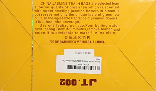 -. Artist : V/A -. Binding : Grocery -. Brand : Unknown -. Color : yellow -. EAN : 0798527063416 -. Feature : It is selected from superior quality of green tea which is scented with sweet-smelling jasmine flowers in bloom; / It possesses not only the unique taste of green tea but also the agreeable fragrance of jasmine flowers. / It is a healthful beverage. / A2AWorld Green Tea - The Way a Healthy Life Should Be ! -. IsAdultProduct : 0 -. Label : Fujian Tea Import & Export Co., LTD -. Manufacturer : Fujian Tea Import & Export Co., LTD -. Model : A2AWorld888 -. MPN : A2A -. NumberOfDiscs : 1 -. PackageQuantity : 1 -. PartNumber : A2A -. ProductGroup : Grocery -. ProductTypeName : GROCERY -. Publisher : Fujian Tea Import & Export Co., LTD -. Studio : Fujian Tea Import & Export Co., LTD -. Title : Chinese Jasmine Green Tea 100 Tea Bags by A2AWorld Green Tea -. UPC : 798527063416
