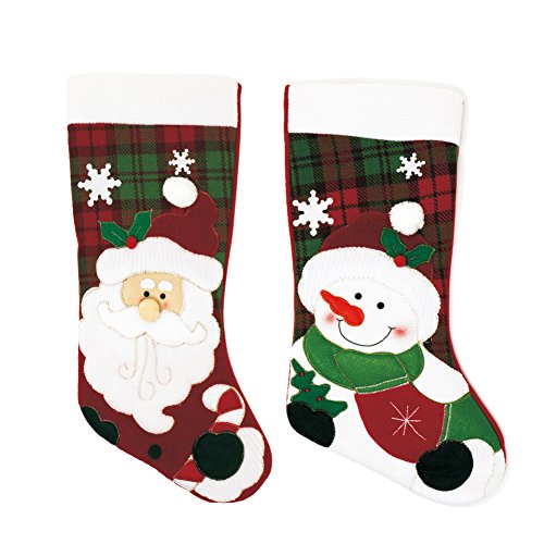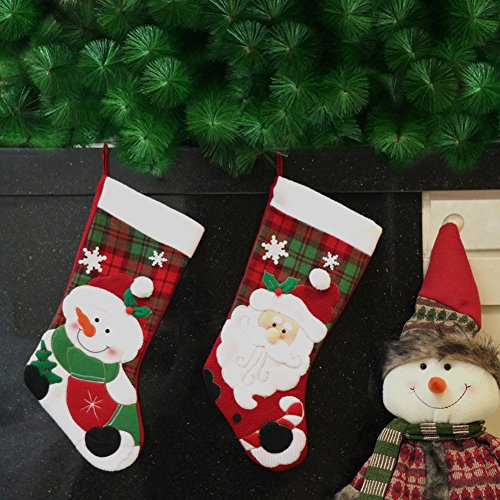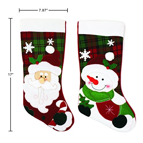 Seatopia 2 Pack 17”Christmas Stockings Cute Santa & Snowman 3D Applique for Holiday Decorations and Gift Holder