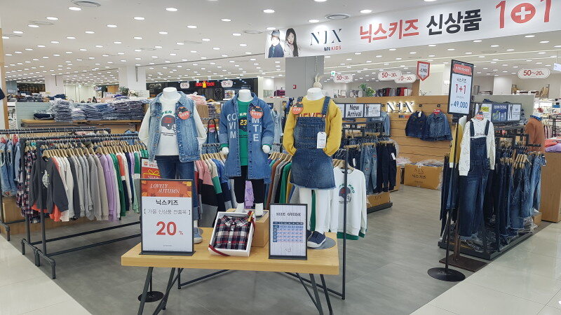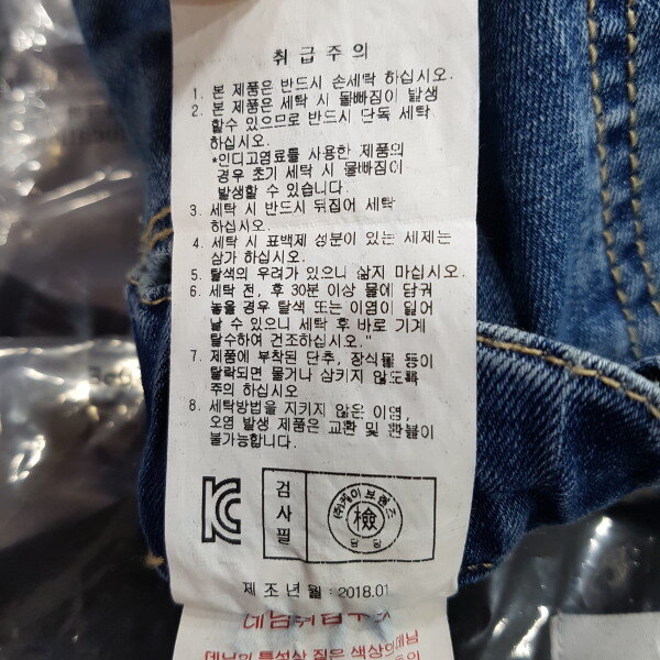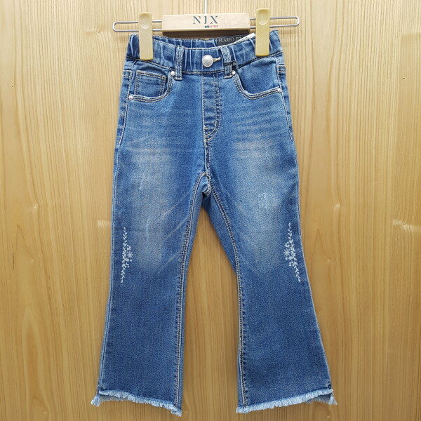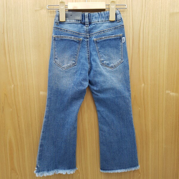 미디움과 라이트 인디고의 중간컬러.밑단의 언발란스한 라인 변형.양 옆선쪽의 꽃무늬 발염으로 여성스럽고 예쁜 옷을 좋아하는 아이에게 추천함.