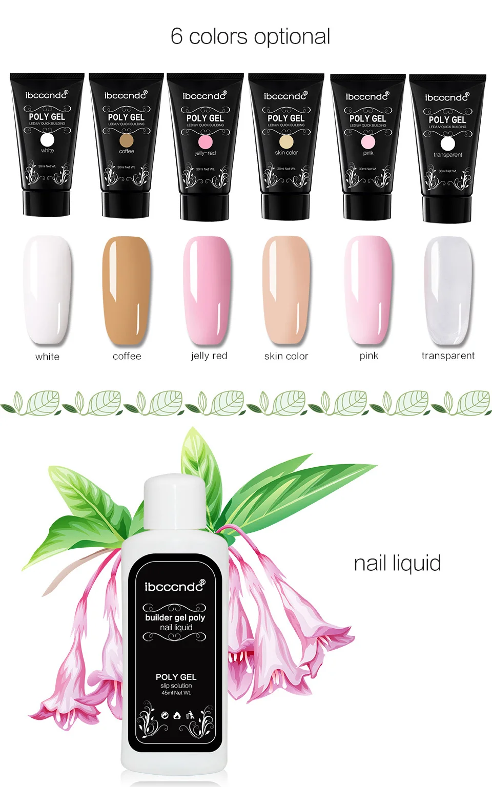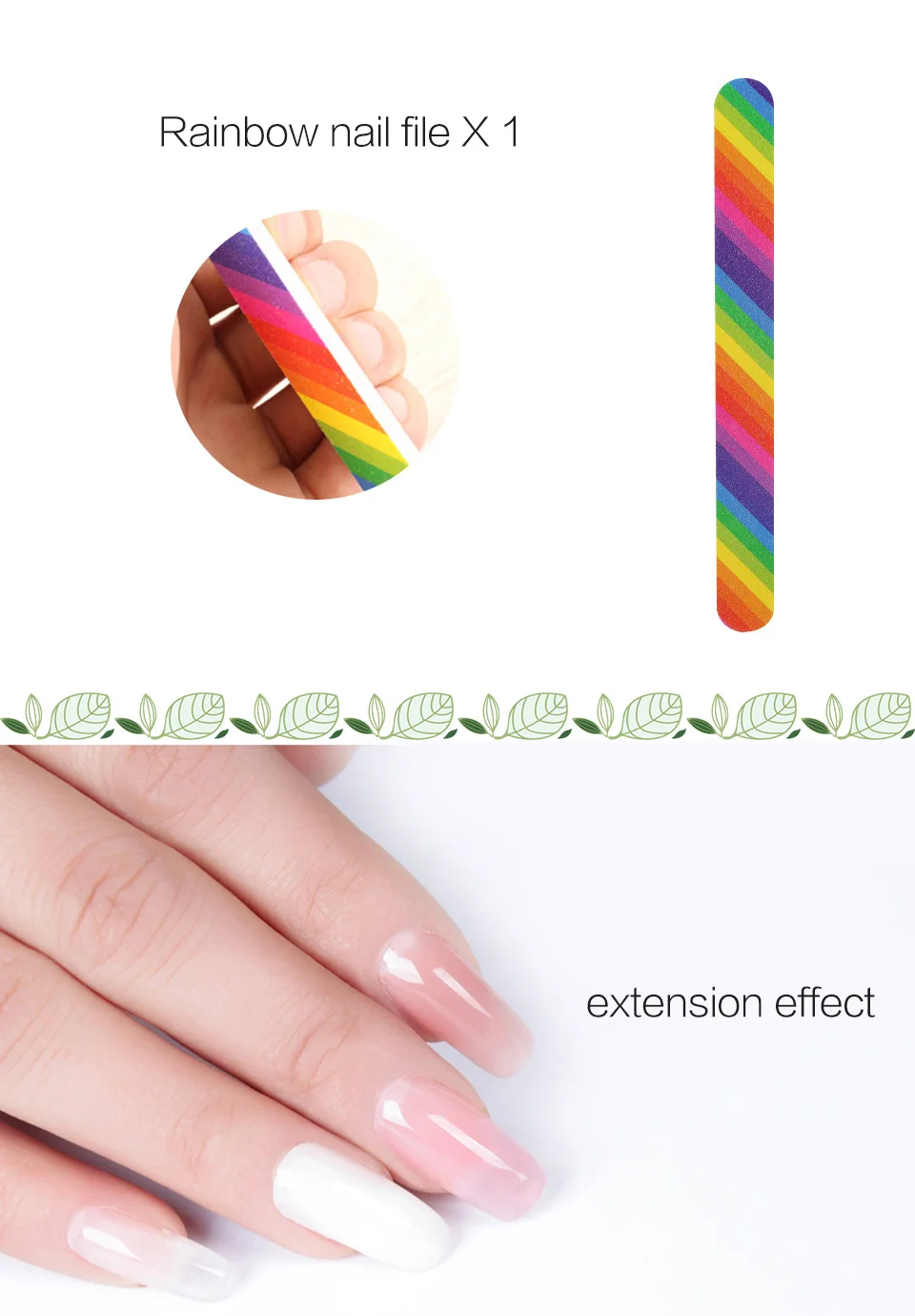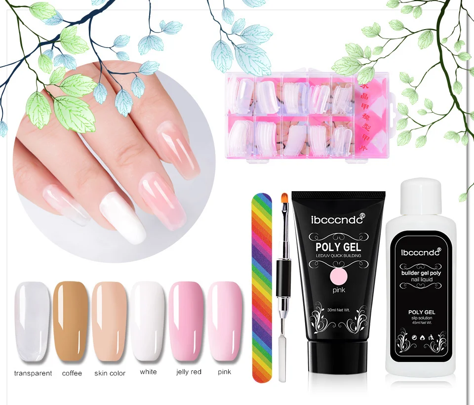 Ingredient:poly gel, nail file, nail tips , brush