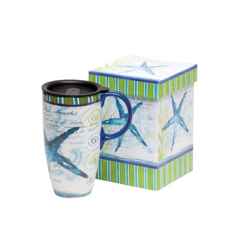-. Title : Blue Starfish Ceramic Travel Coffee Mug In Matching Gift Box