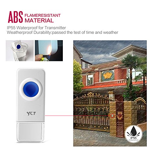 Premium quality; (Super long range wireless transmission, ultra strong penetration, signal stability, operating range up to 500 feet open areas). Transmitter with super rating IP44 waterproof, can be installed outdoor. The transparent compartment at the bottom of the transmitter allows visitors to leave message for you.