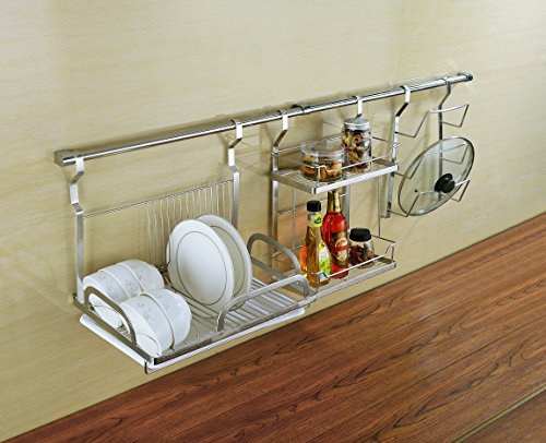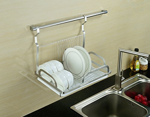 Wall Mount Dish Drying Rack Draining Dish Rack With Drain Board, Stainless Steel, GEYUEYA Home