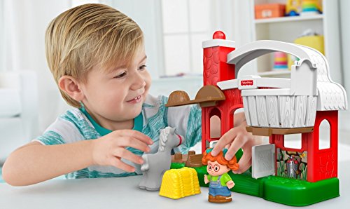 Budding farmhands will love horsing around with Sofie as they discover what it’s like to work at the Little People Hay Stackin’ Stable. They can open & close the barn door to hear fun animal sounds, phrases & songs. They can take the horse for a “run” in the ring. (Just spin the horse around and around to hear more fun phrases, sounds and another song!) When it’s feeding time, they can help Sofie launch the hay bale into the loft and drop it through the opening. They can even put the horse to bed in its stall after a long day of work – and play! Who knew a stable job could be so much fun?