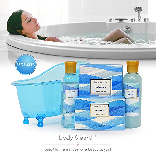 Spa Gift Baskets for Women, Body & Earth Bath Gift Set with Tub, Gifts for Her, Ocean 5pc, Best Gift Idea for Women