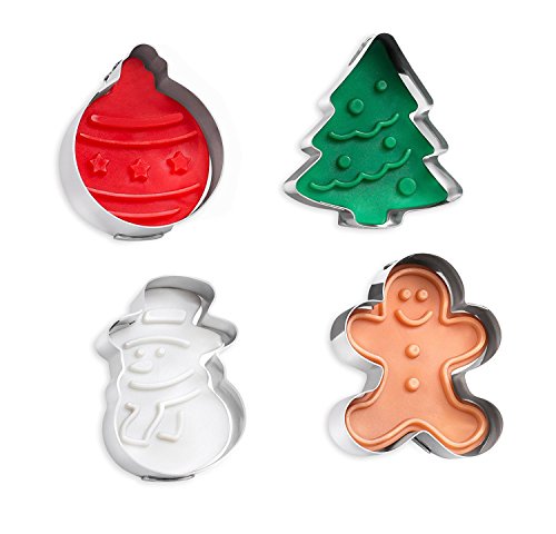 [Product Information]- HOLIDAY ESSENTIAL: A set of 4 Christmas themed, mini cookie cutters. Includes a Snowman, Christmas Tree, Gingerbread Man and Ornament
