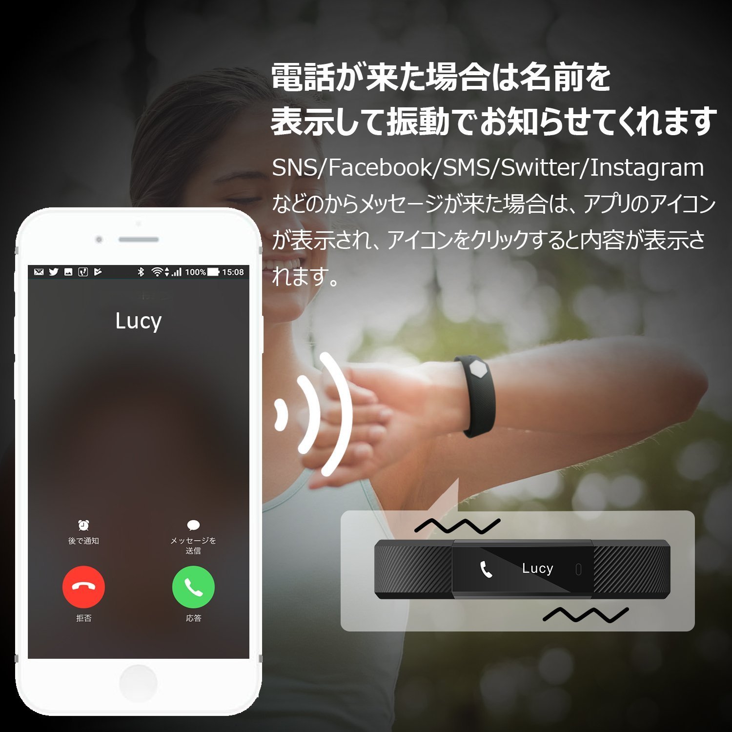 You will be notified by vibrating by setting phone, SMS, Facebook, Twitter, WhatsApp, Instagram, Wechat etc.