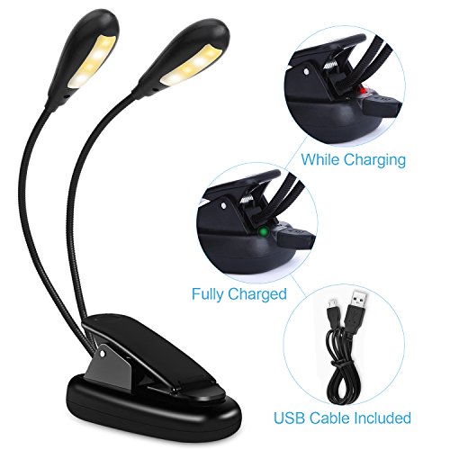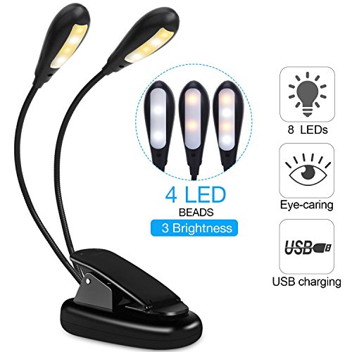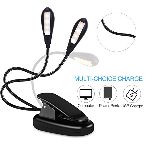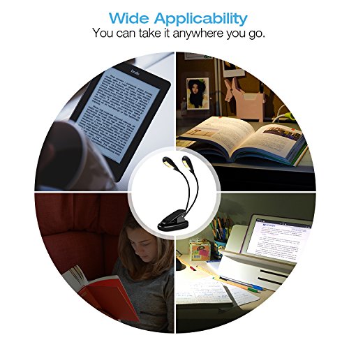 - [Non-Flicker Light & Eye-Protection]: Book lamp features with 2 heads & 8 dimmable LEDs which will create bright, soft or strong lights. No flickering, no dizzy light, no shadow, eye-caring for long time reading at night.