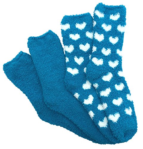 (1) Pair of Blue with White Hearts Fuzzy Socks and (1) Pair of Solid Blue Fuzzy Socks