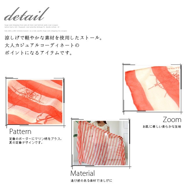 素材:Viscose100%サイズ:長さ約183cm×幅約90cm重量:約90g