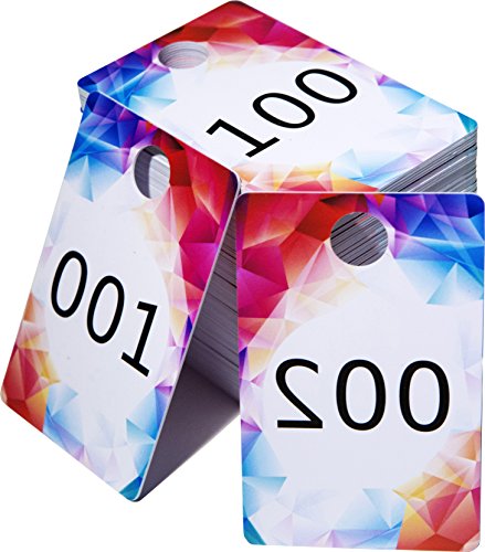 -. Feature : 1 Set of 100 Consecutive numbers 001-100, 1 side normal (Glossy) & 1 side backwards numbers (Matte, anti-glare)! / Reverse numbers so the viewer sees the number correctly when watching your live sale, looking at the correct number you can be sure that the buyer sees the correct number! / Professional looking hard plastic tags with easy-to-read digits, environmentally Responsible 100% Recyclable. / Bonus of 10 additional cards, without figures, in case of loss and you can write a marker any number! A convenient box for storage! / Dimensions: 3.37 Inch X 2.13 Inch with a ½ Inch hanger hole! For comparison it is the size of the credit card!