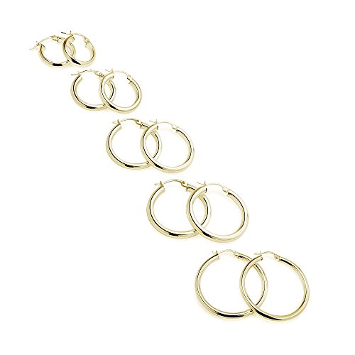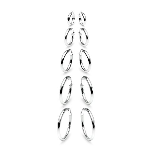 FEATURE - This hoop jewelry set display five pairs of high polished round hoops earrings in various sizes. The set includes a pair of 15mm, 20mm, 25mm, 30mm and 35mm hoop earrings. This earrings set in fine jewelry should be an addition to your jewelry collection. It can be purchased as hoop earrings for men, hoop earrings for women or hoop earrings for teen girls.