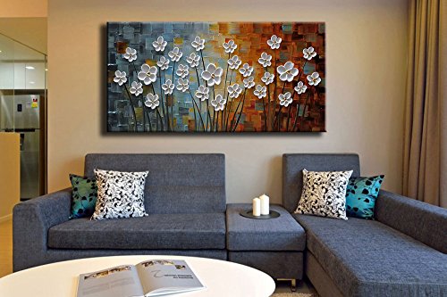 -. Title : YaSheng Art - Hand painted Contemporary Art white Flowers Painting Landscape Modern Texture Palette Knife Paintings Home Interior Decor Wall Art picture Ready to Hang 24x48inch