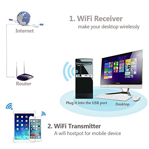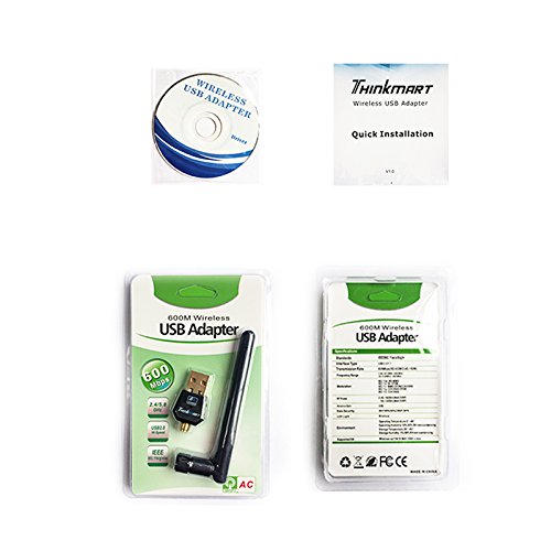Thinkmart 600Mbps Dual Band USB WiFi Adapter 802.11ac 5GHz Wireless Network Adapter Antenna for Desktop Laptop, Support WinXP to Win10 Linux Mac10.4-10.12