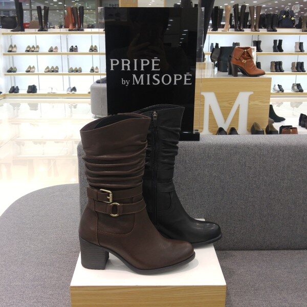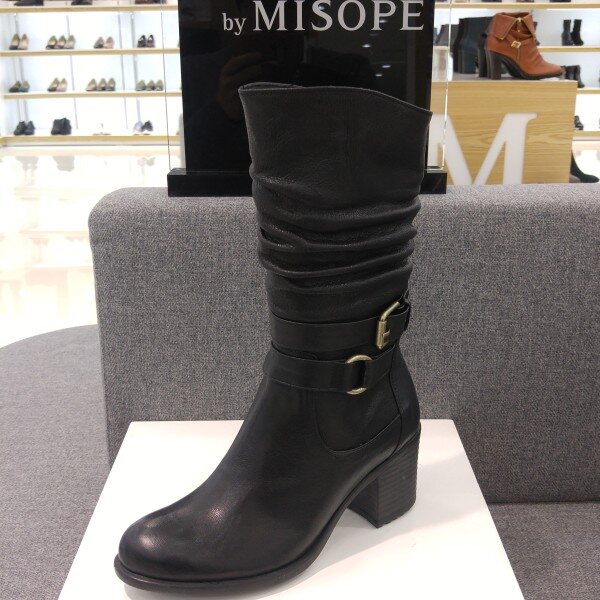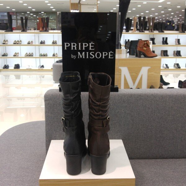 미소페 여성 벨트장식 집업 셔링하프부츠(7cm)