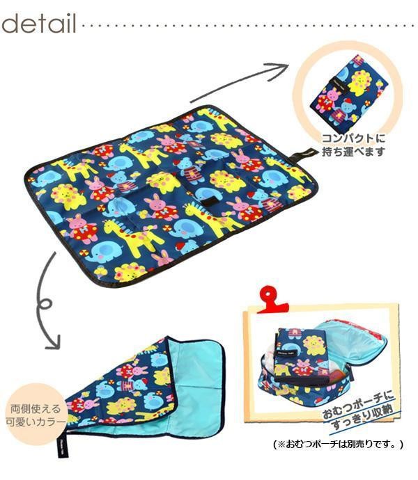 ご家庭でもお出かけ先でも、さっと取り出して使える便利なおむつ替えシート。撥水加工を施しているので、汚れてもお手入れがカンタンです。急なおむつ替えもこれで安心♪ |