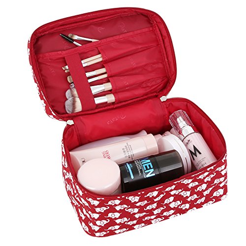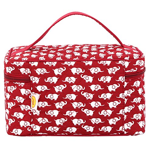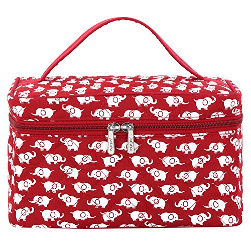 Cosmetic Bag Cotton Elephant, Pataya Printing Series Cotton Makeup Bag Organizer with Quality Zipper for Women (Red Elephant)