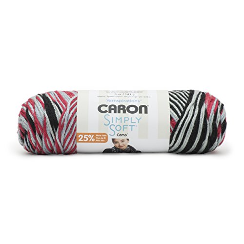 Caron Simply Soft Yarn (4) Medium Worsted Gauge 100% Acrylic - 5oz - Red Camo - Machine Wash & Dry
