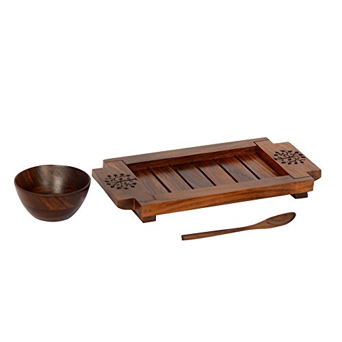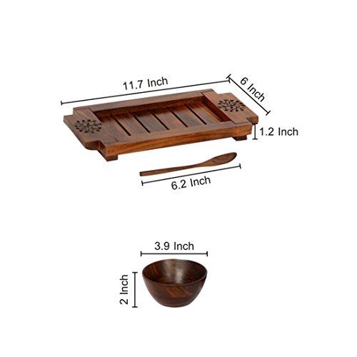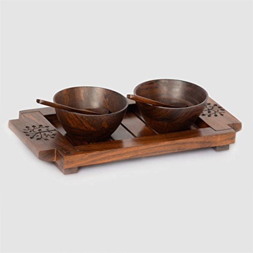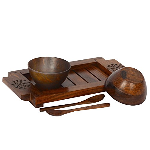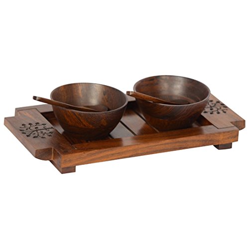 ExclusiveLane Bowl Set With Tray & Spoon In Sheesham Wood -Bowls Serving Bowls Mixing Bowls Set Soup Bowls Cereal Bowls