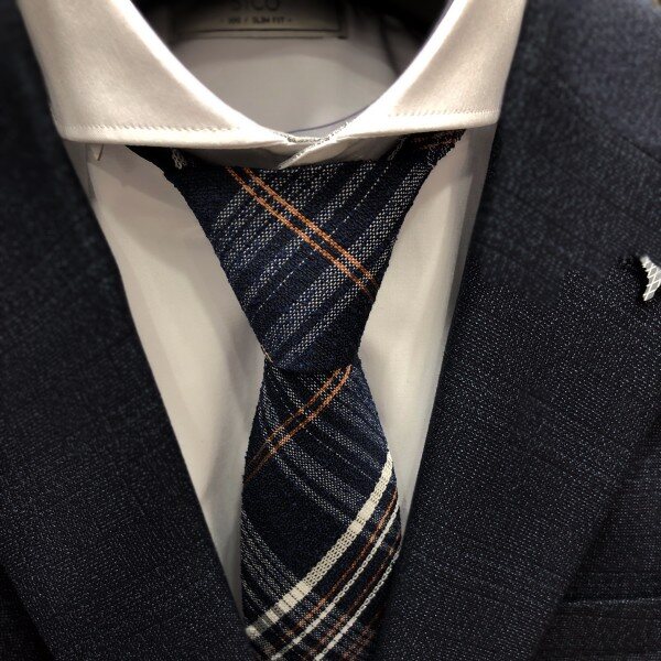 진네이비 체크지퍼넥타이입니다. 착용하면 세련되고 댄디해보여요^^