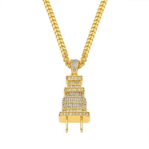 -. Title : HongBoom Hot Hip Hop Cuban Link Chain 14K Gold Silver Plated CZ CRYSTAL Fully Iced-Out Plug Necklace