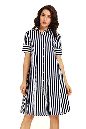 This delicate skin feel comfortable cotton dress, loose profile, can easily help you create a stylish leisurely style. Single product with a sweet striped cotton cut, and with a single-breasted design, can unlock a few buttons, so that the shape is more with nature. May wish to sink handbags, embarked on sandals calm journey, give yourself a more leisurely, physically and mentally more easily; more than a point indifferent, life is more beautiful. Leisurely, to the mind to stay in one side of the Pure Land, to stay a warm life. Please check the measurement chart carefully before you buy the item. Size Chart: S (US 4-6) Bust: 96cm/37.8"; Shoulder:38CM/15.0"; Length:104cm/40.9" ;Sleeve Length :25cm/9.8" M (US 8-10) Bust: 101cm/39.8"; Shoulder:39.2CM/15.4";Length:105cm/41.3"; Sleeve Length :25.6cm/10.1" L (US 12-14)Bust: 106cm/41.7"; Shoulder:40.5CM/15.9";Length:106cm/41.7" ;Sleeve Length :26.3cm/10.4" XL (US 16-18)Bust:111cm/43.7"; Shoulder:41.7CM/16.4";Length:107cm/42.1" ;Sleeve Length :26.9cm/10.6" XXL (US 20-22)Bust:116cm/45.7"; Shoulder:43CM/16.9";Length:108cm/42.5" ;Sleeve Length :27.5cm/10.8"Feature