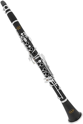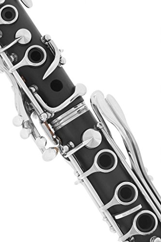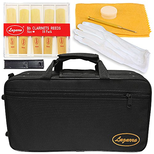 Lazarro 150-BK-L B-Flat Bb Clarinet Black, Silver Keys with Case, 11 Reeds, Care Kit and Many Extras