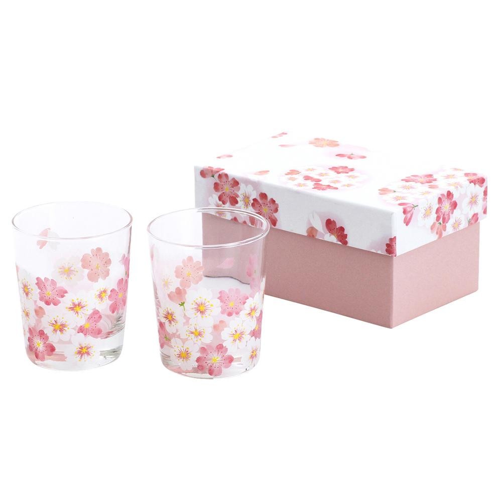 淡い色で上品に仕上げた桜柄が可愛らしいロックカップのペアセット。大切な方へのギフトにも最適です。