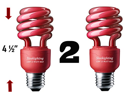 SleekLighting 13 Watt Red Spiral Bug CFL Light Bulb 120Volt, E26 Medium Base. RED (Pack of 2)
