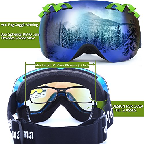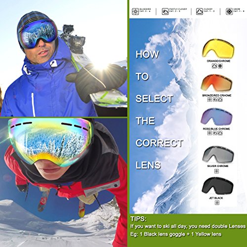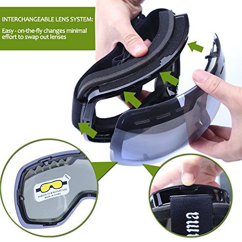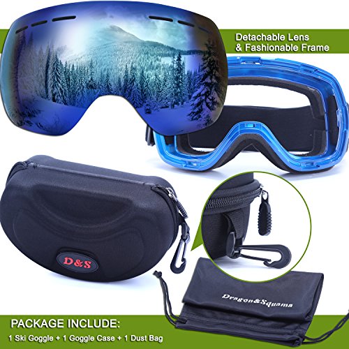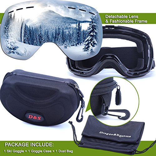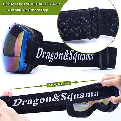 Studio : Dragon Squama Publisher : Dragon Squama Product Description DO You Want to Stay Away from Bright Light,Glare,Wind in Skiing? Snow goggles are an essential piece of skiing gear.Goggles protect your eyes by creating a seamless wrap across your face to protect your eyes and face from the sun, wind and snow,sand.No one wants to come home from a day in the mountains with sun spots,wind burn or frostbite. Do You Troubled with the Fogging on the Slopes? Best snowboard goggles are designed to shed wind,seal out snow spray,protect your eyes from harmful UV rays,prevent fogging with dual ventilated lenses that have been treated with anti fog coating.Use Dragon Squama skiing googles fog free. OTG Snowmobile Goggles Key Features: ① Interchangeable lens system: Easy-on-the-fly changes, minimal effort to swap out lenses.Swap for day/night different weather conditions,Extra lenses sold separately. ② Anti-fog Dual PC Lens: Detachable Full REVO Spherical Lens goggles have a lens shape that matches the curvature of your eyes to give you a less distorted field of vision, more peripheral vision and a clearer sharper view.Lens size:8.85 inches (W) x 3.74 inches (H). ③ OTG Ski Goggles: OTG Goggles are designed to have a deeper,taller and wider Triple-layer frame to accommodate skiers who choose to wear their prescription glasses underneath their goggles. ④ Anti Fog Goggle Venting: High Ventilation goggles give you the maximum amount of ventilation to prevent your goggles from fogging. ⑤ Helmet compatible: Adjustable elastic silicone non-slip head strap can fit most helmet. ⑥ TPU Frame Size: Large TPU Frame,8.85 inches (W) x 3.74 inches (H),flexible,breathable,accommodates both medium and large face shape. Good vision is essential on the slopes.That's why you need Dragon Squama snowmobile goggles,Don't hesitate,Add to Cart.Enjoy your sweet jump. 0