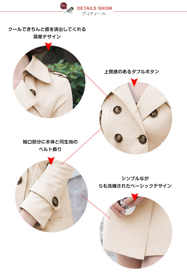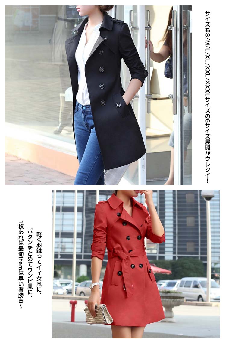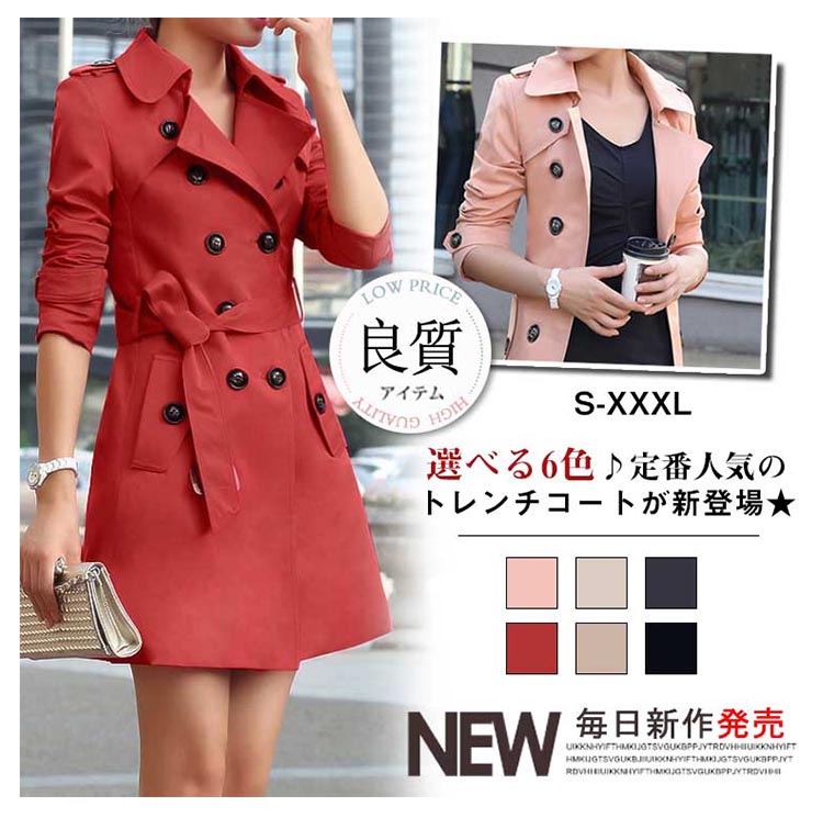 | 選べる6色♪定番人気のトレンチコートが新登場★COOLなイメージのトレンチも女性らしい印象で着こなして頂けます♪ウエスト部分のベルトは外して前開けでラフに着こなすもよし★後ろでリボンにしてガーリーに着こなすもよし★前で閉めてシンプルカッコよく着こなすもよし★カジュアルにも大人っぽくも着こなせる定番の落ち着いたベーシックカラー6色♪サイズもS/M/L/XL/XXL/XXXLサイズの6サイズ展開がウレシイ!軽く羽織ってイィ女風に、ボタンをとめてワンピ風に、1枚あれば最旬Itemは早い者勝ち?!! | |