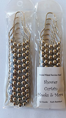 12 EASY GLIDE CLOSED HOOKS – Each hook and ring is designed with 5 attractive rolling nickel balls to easily open and close your shower curtain without snagging. Non-magnetic hooks roll smoothly on metal rods just as easily as they do on non-metal shower curtain rods.