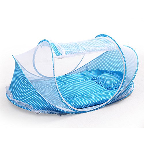 -. Feature : 1.baby mosquito bed including?mattress, pillow and mosquito net. It is better for 0-18 month baby / 2.It could keep away you baby from mosquito, flies and insects, giving your baby a safe and quiet place to sleeping / 3.It is Soft, comfortable and can prevent baby dropping down the floor, it also can prevent your baby from dust. Perfect for outdoors, it also can use for indoors / 4.Package Content: 1 x Baby Mosquito Net Tent 1x Pillow 1x Cotton-padded mattress 1XCool pillow / 5.The Material is Breathable mesh and Cotton which provides a virus free environment while keeps the air flowing and your baby dry