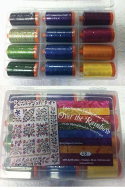 -. Feature : Aurifil Thread Kit - Over the Rainbow by Edyta Sitar of Laundry Basket Quilts / 10 large spools, 1422 yards 50wt cotton thread / 100% Cotton colors in Yellow, Orange, Purples, Blues, Greens / 100% Egyptian Cotton, 1300 meters (1422 yards) each / Perfect for piecing, applique, hand quilting, machine quilting, or embroidery