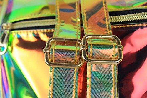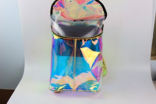-. Feature : Material: Customized Hologram PVC / Bag Dimensions: Height 30cm / 11.81 ", thick 13cm / 5.12", width 25cm / 9.84 " / Retro barrel type / Double side PU leather / Featured by hottest Hologram Transparent PVC Material with Rainbow Shinning Effect