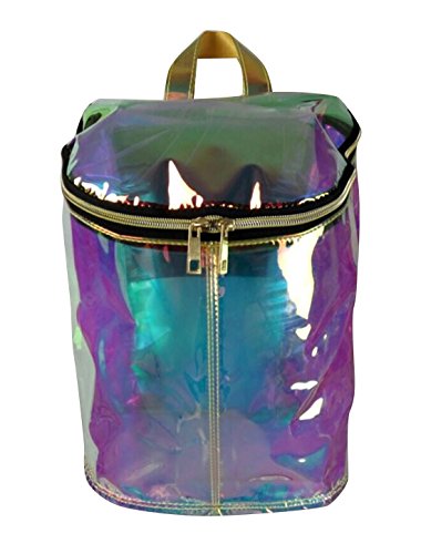 -. Title : Retro Barrel Type Women's Pu Leather Hologram Rainbow Transparent Backpack