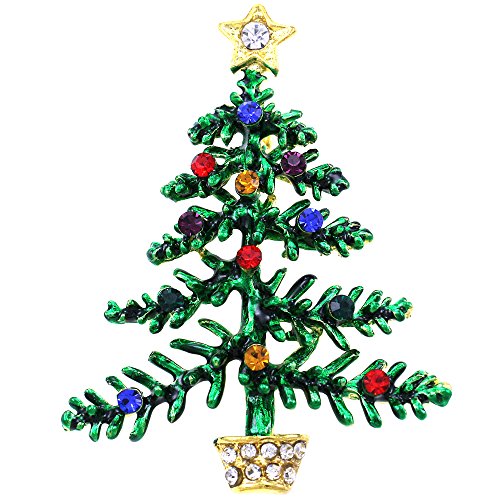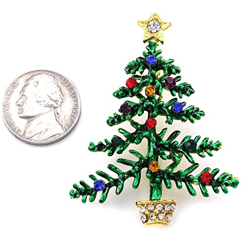 -. Feature : Celebrate the Christmas Holiday Season with these Beautiful Christmas Tree Pin Brooch / Brooch Size: Approx 2 Inch Width x 2.25 Inch Length / Rhinestones Colors: Multicolor / Lead Compliant / 100% Satisfaction Guarantee