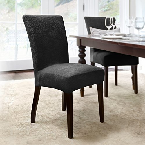 -. Title : Coverworks DAHL1830EBON4 Dahlia Stretch Dining Chair Slipcover in Ebony 4 Pack,Ebony,Parson's Chair