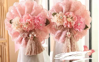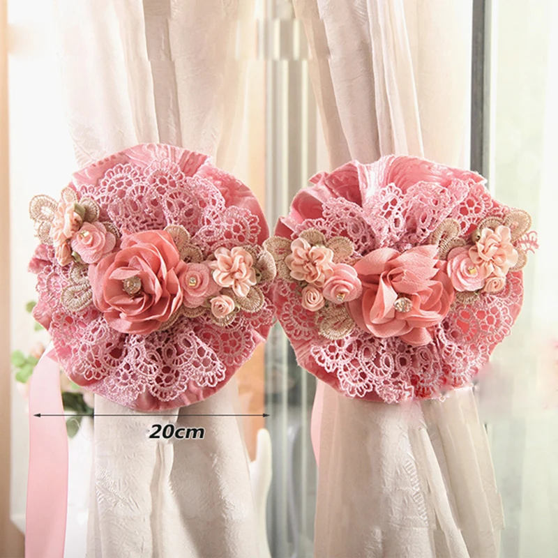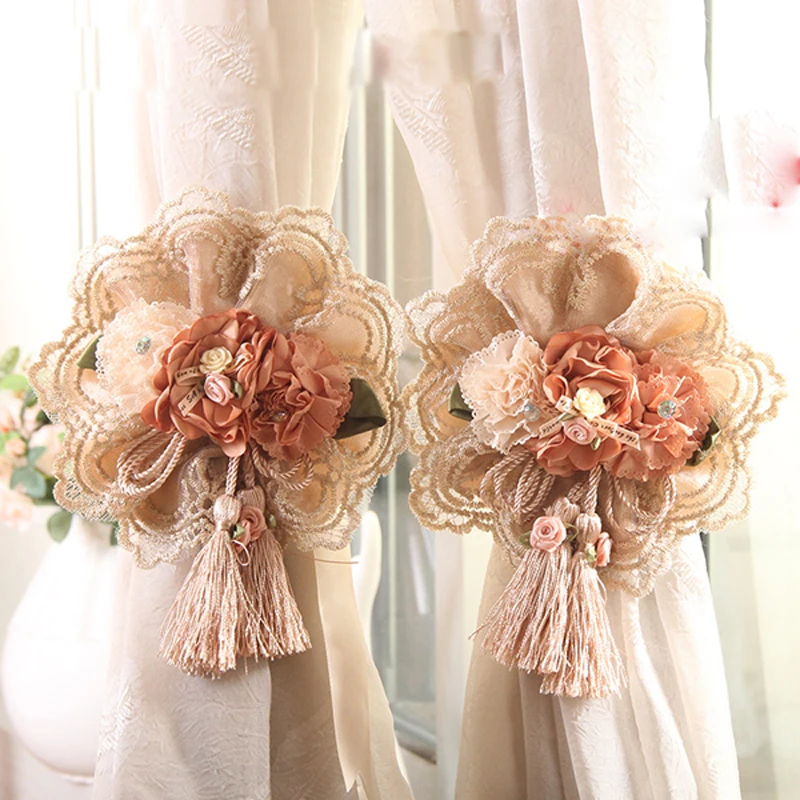 Feature:Lace Flower Curtains Straps Hand Made Pastoral Curtain Decorative