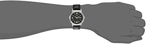 Brand, Seller, or Collection Name:Timex Model number:T2E561 Part Number:T2E5619J Item Shape:Round Dial window material type:Mineral Display Type:Analog Clasp:Buckle Case material:Brass Case diameter:40 millimeters Case Thickness:10 millimeters Band Material:Calfskin Band length:Mens Standard Band width:20 millimeters Band Color:Black Dial color:Black Bezel material:Brass Calendar:day-date Special features:measures-seconds, Luminous Movement:Analog-Quartz Water resistant depth:165 Feet